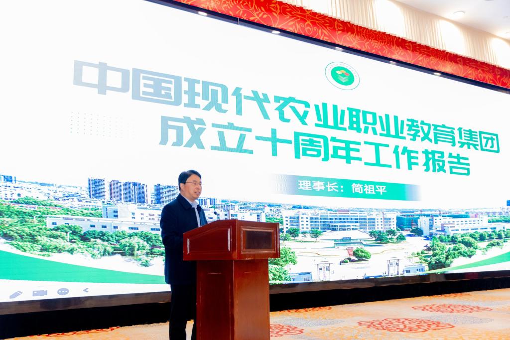 简祖平回顾了职教集团十年发展历程,阐述了从无到有、从创建到示范的跨越。集团认真落实党的职教方针及相关文件精神,成员单位团结协作,深化产教融合与校企合作,创新办学体制机制,在实体化运作、平台效应放大、服务能力提升等方面成绩显著,为乡村振兴和农业农村现代化做出了贡献。他介绍了集团下一阶段工作重点,包括融合职教集团与共同体发展、培育“双师型”教师队伍、推进公共实训基地建设、开发适合培训教材、提升各类赛事层次、打造“神农学院”品牌等。