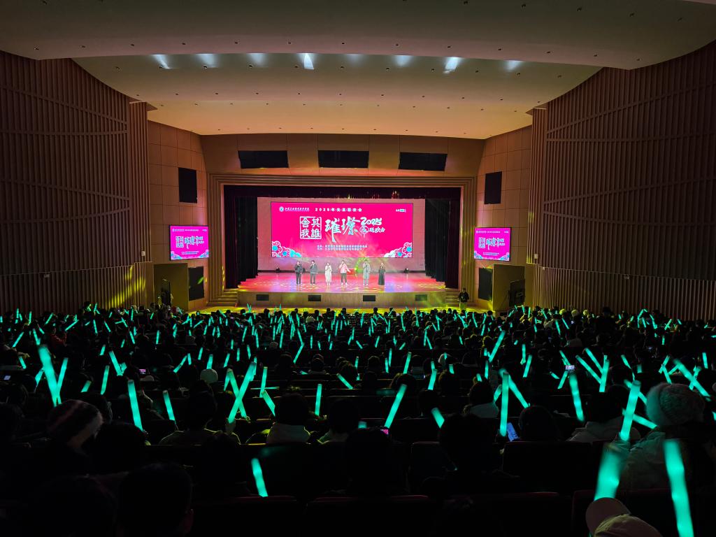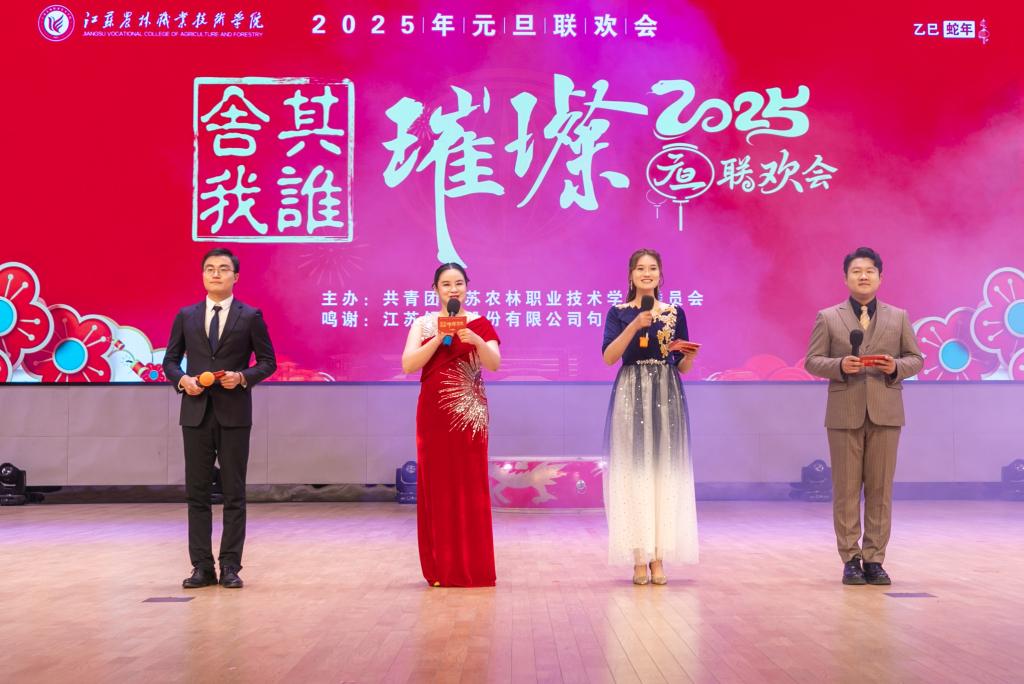 岁序更新龙蛇竞舞,春风初度莺燕争鸣。12月29日晚6时,学院大学生艺术中心剧场欢乐祥和,“舍我其谁 璀璨2025”元旦联欢会在这里举行。句容市副市长、公安局局长周建军,学院党委委员、副院长毕德全,句容市文体广电和旅游局党委书记杨钢,句容市文化馆、美术馆和学院相关部门负责人与千余名师生一同观看演出,共同迎接新年的到来。