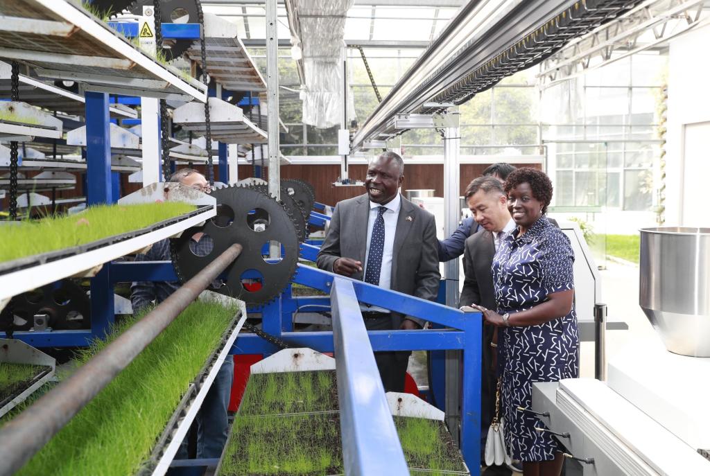 大使一行先后参观生态大道、草莓示范基地、植物科技馆及5G智慧草坪,深入了解生态农业、无土栽培、植物育种等成果。大使高度评价学院将传统农业与现代科技融合的实践,称其“为全球农业现代化提供宝贵经验”。在农博园友谊广场,大使夫妇、潘永圣、卢利林与学院4名肯尼亚留学生共同种下象征中肯友谊的榉树。潘永圣表示,愿双方合作如树木般茁壮成长。大使寄语留学生们争做中肯农业交流的桥梁。