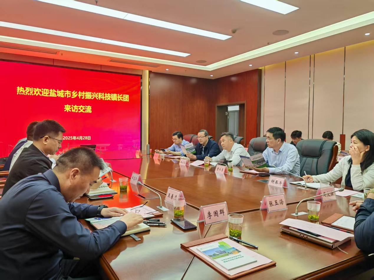 4月28日上午,盐城市乡村振兴科技镇长团一行9人,在团长徐国彬副县长的带领下到taptap官网考察交流。党委副书记、院长潘永圣,党委副书记曹仁勇及相关职能部门负责同志参加了会议,双方围绕乡村振兴人才培养、产学研合作等议题展开深入交流。