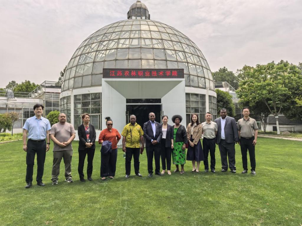 5月18日上午,巴布亚新几内亚驻华大使善德思·卡姆巴内及夫人、参赞乔伊斯·邦杜、一等秘书鲁本·恩诺克与镇江市外办礼宾新闻处处长童松强等一行10余人来访学院,并参观了学院学生实践基地江苏农博园,学院党委委员、副院长王瑾及外事办、国际教育学院、江苏农博园相关负责人一起接待了来宾。
