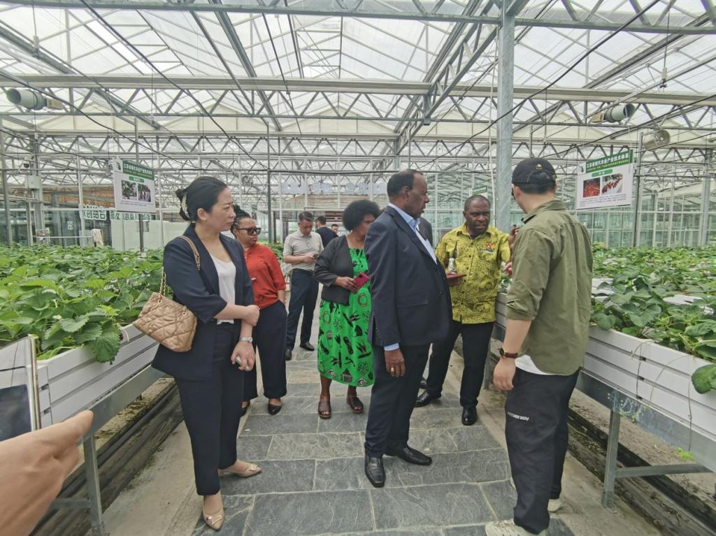 来宾在江苏农博园参观期间,与学院参与陪同接待人员密切交流,对学院草坪草技术以及设施园艺、草莓种植等现代农业技术和装备大为赞叹,并期待学院能与巴布亚新几内亚开展交流与合作。