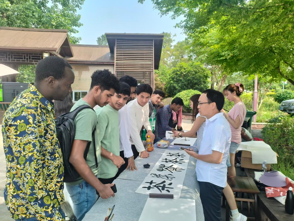 活动精心设计八大游园打卡点,以“茶博园大门口-茶道广场-老子茶馆-竹长廊-习茶院”为主线,融合科普、非遗、竞技与互动。在老子茶馆,江苏句容茅山长青茶业公司负责人引领观众品鉴国家级非遗茅山长青茶,现场展示传统制茶技艺的匠心传承,一斟一饮间尽显茶文化精髓;在茶道广场与习茶院一楼,茅山校区瀚墨农林书画社以茶为墨,挥毫创作,尽显文人雅韵;茶与食品科技学院师生们则复原唐代饼茶、宋代点茶场景,让典籍中的茶文化“活”在当下;竹长廊的“大家来找茶”游戏妙趣横生,习茶院广场的擂茶、新疆咸奶茶等新式茶饮体验新奇独特;茶园采茶比赛更是充满竞技乐趣,这些趣味互动与科技体验活动吸引了大批年轻人踊跃参与,现场气氛热烈非凡。