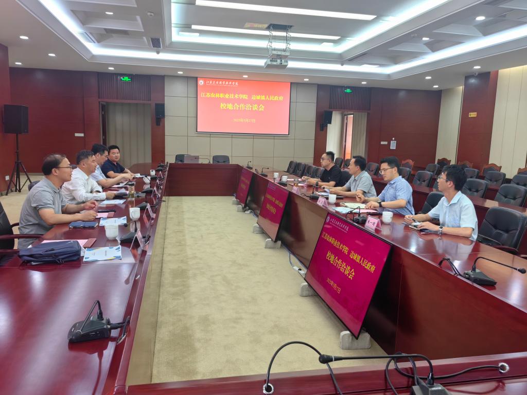 5月27日,学院与句容市边城镇人民政府校地合作洽谈会在综合楼九楼召开,边城镇人民政府党委副书记、镇长张世海,副镇长谢晨,学院党委副书记、院长潘永圣,党委副书记曹仁勇,江苏农博园、畜牧兽医学院负责人,句容市自然资源和规划局华阳中心所边城服务站、边城镇经济发展办公室等负责人参加了会议。