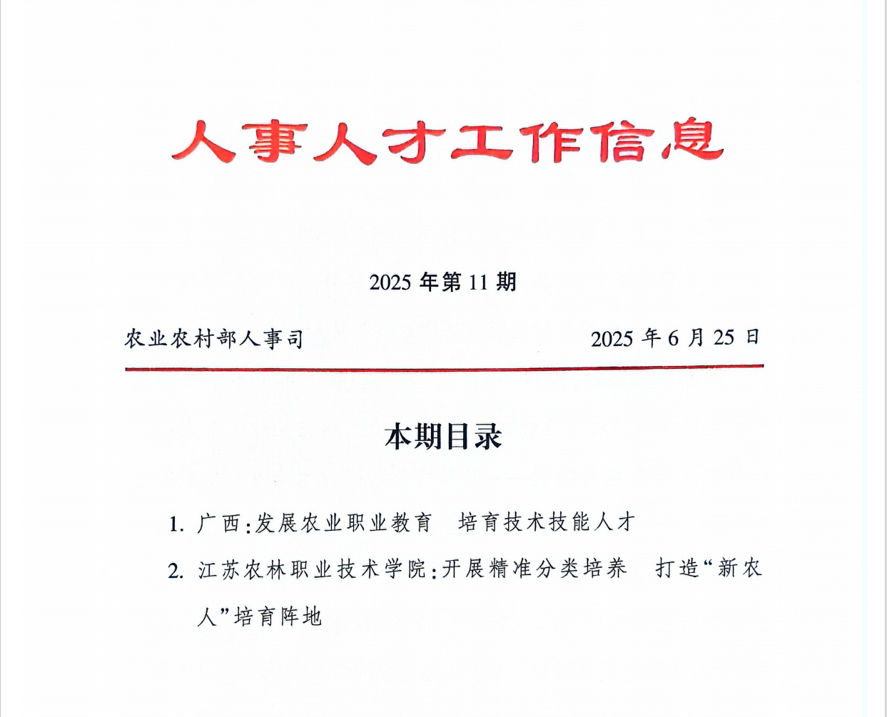 近日,农业农村部人事司《人事人才工作信息》2025年第11期以《taptap点点官方网站:开展精准分类培养 打造“新农人”培育阵地》为题报道了taptap官网在“新农人”分类培养模式上的探索实践,并面向全国农业农村系统推广。