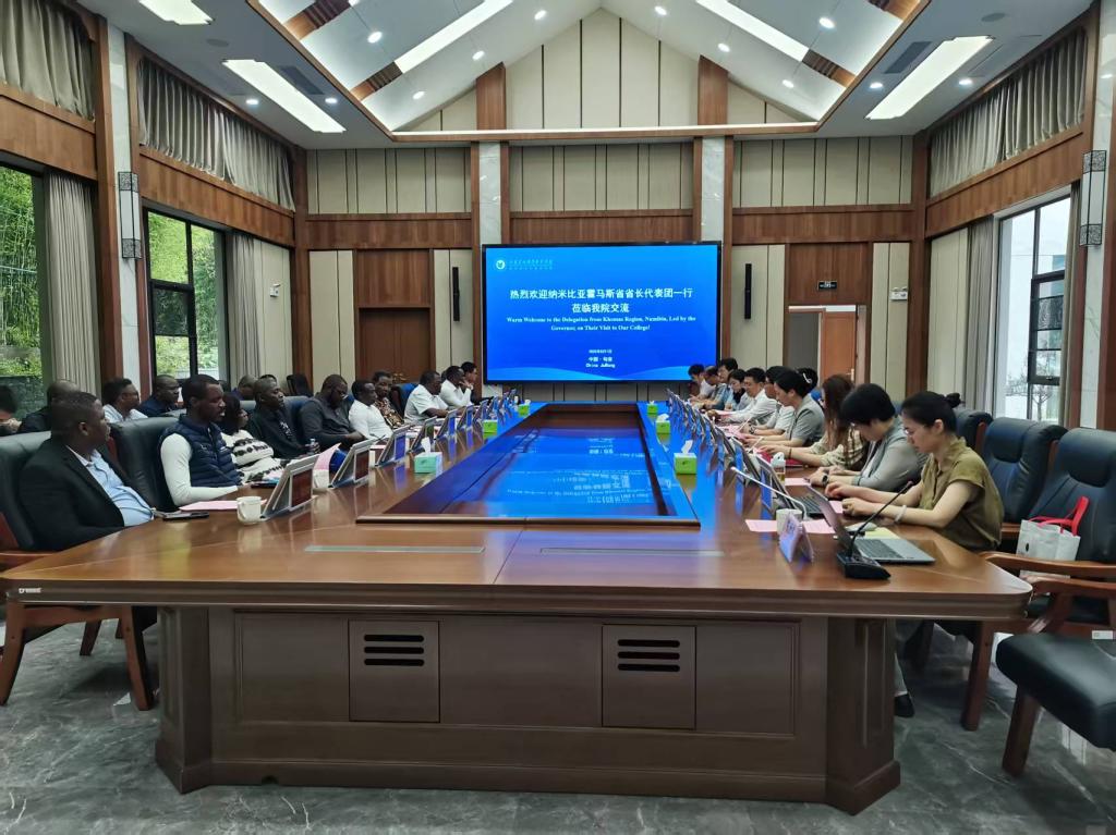 交流会上,简祖平首先表达了对客人的热烈欢迎,介绍了学院百年办学历史以及与纳米比亚交流合作成果,提出了双方未来在共建技术培训基地、师生交流等领域合作的期望。陈贡伟博士分享了在林业种植等领域的经验。会后,双方探讨了在留学生培养、师生访问交流方面的合作。