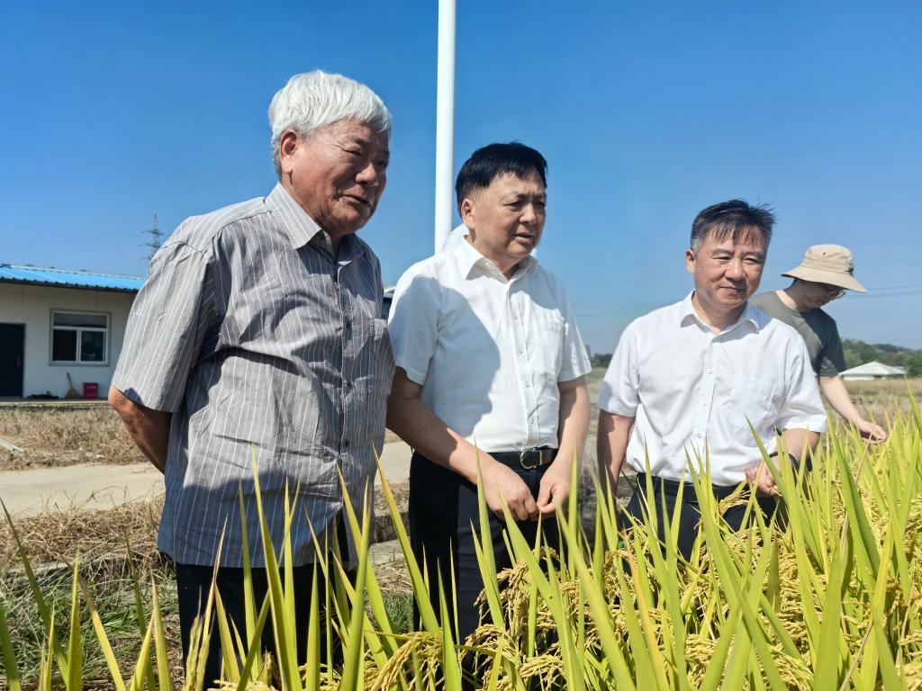 近日,原江苏省农业委员会主任、江苏省现代农业科技产业研究会会长吴沛良,江苏省种子管理站站长吉健安等一行来到taptap官网,考察水稻新品种“常优粳10号”高产示范创建工作。学院党委副书记、院长潘永圣,江苏省作物学会秘书长杨宝林,农学园艺学院负责人及相关科研团队成员陪同考察。