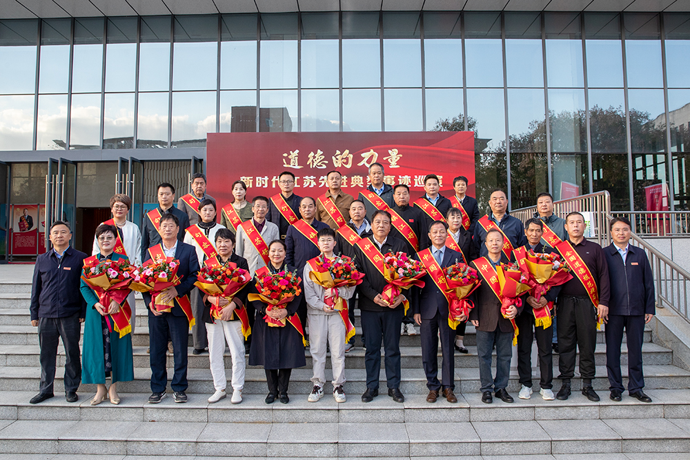 活动伊始,学院青年志愿者向先进典型代表献花,表达崇高敬意。现场播放的先导片,回顾了江苏省在道德建设道路上的坚实足迹与丰硕成果。