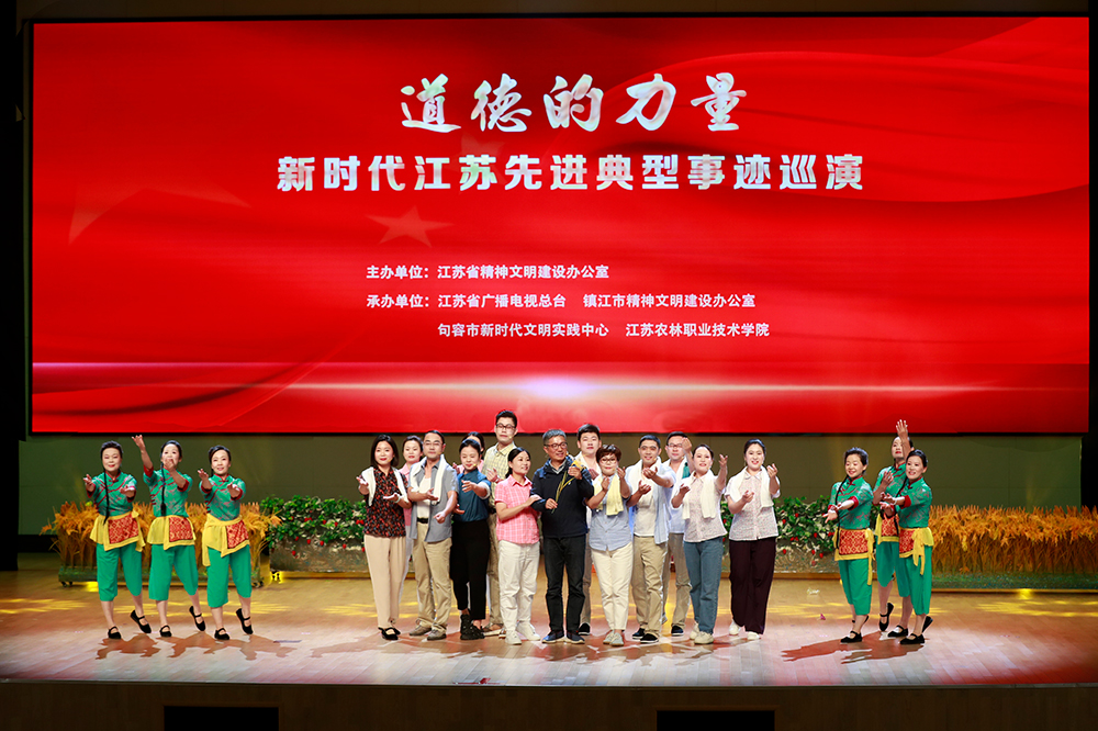 演出在创意新曲《德润江苏》中拉开帷幕。音乐快板《孝老爱亲一脉传》生动讲述张景宏、殷志兰等人孝老爱亲的感人事迹;情景讲述《从火光中走来》再现缪梅清与“缪家军”义务救火的英勇壮举;舞蹈《伴您到老》展现严慧携盲人奶奶求学的不凡坚守。《值得》讲述了第九届全国道德模范盖钧镒院士毕生致力于大豆研究的感人事迹,彰显其强农兴农的使命担当……一幕幕,一篇篇,都生动的再现了他们崇高的精神和感人的事迹。