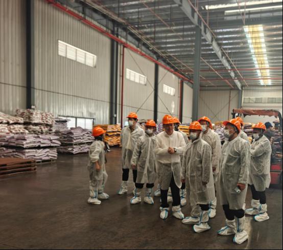 调研期间,集团客服经理张洁、品控经理朱红梅分别介绍了企业发展历程、管理架构、企业文化以及核心技术体系。随后,集团董事长唐正杰陪同潘永圣一行实地考察了研发中心、品控实验室及生产车间。唐正杰表示,感谢学院的指导和技术服务,为企业的持续发展和海外业务拓展提供了有力支撑,期待与学院进一步深化合作,借助学院的国际化平台与资源优势,更好地推动海外投资与市场开拓。
