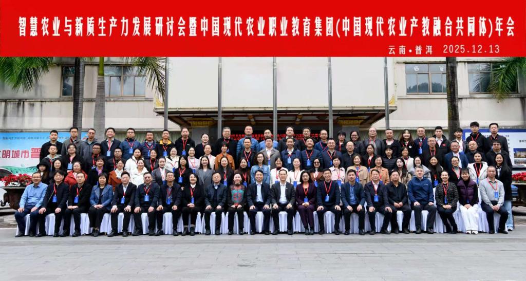 2025年12月13日至14日,智慧农业与新质生产力发展研讨会暨中国现代农业职业教育集团(中国现代农业产教融合共同体)年会在云南普洱召开。本次会议由普洱市职业教育中心承办,教育部职业教育发展中心战略发展处处长白汉刚,普洱市副市长胡剑荣,集团理事长、taptap官网党委书记简祖平,集团理事长、隆平高科信息技术(北京)有限公司董事长陈志新,新疆生产建设兵团第十四师昆玉市人力资源和社会保障局党组书记、局长魏娜等领导专家出席,来自集团全国职业院校、行业企业和科研机构的近百名代表齐聚一堂。集团秘书长贾君主持会议。