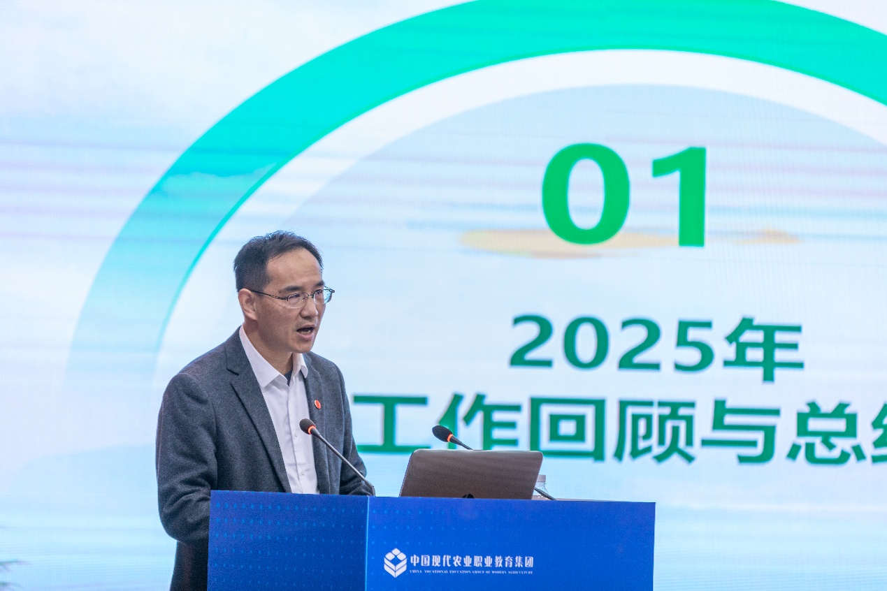 集团理事长陈志新系统总结了2025年度集团工作,从组织建设、项目推进、资源整合与活动开展等方面回顾成绩、分析形势,为集团未来发展厘清方向。集团秘书长贾君发布了2026年度工作计划,并启动了软科学研究项目申报工作,鼓励成员单位围绕智慧农业人才培养、产教融合机制创新等主题开展研究,以科研创新支撑集团可持续、高质量发展。集团副秘书长、黑龙江农垦职业学院产教融合中心主任佟启玉通报了部分成员单位代表变更情况,并主持完成现场表决程序,相关调整获一致通过,为集团工作衔接与效能提升提供了组织保障。