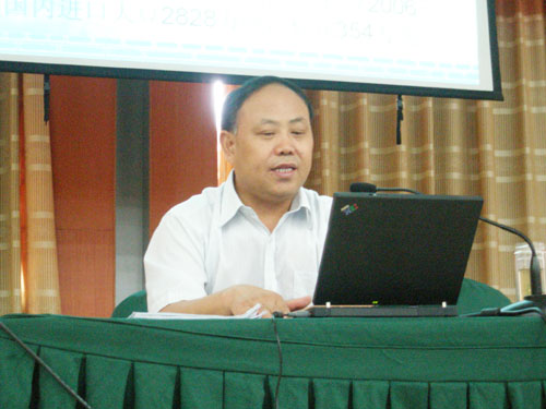 省农林厅科教处李胜强副处长作“农民培训的现状与对策”的报告