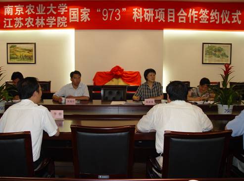 7月5日,国家“973”科研项目合作签约仪式在taptap官网北校区会议室举行。南京农业大学农业部动物生理生化重点开放实验室主任赵茹茜教授、黄瑞华教授,taptap官网尹汉学院长、畜牧兽医系李静副主任和其他相关人员参加了签约仪式。
