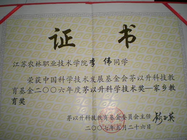 taptap官网学生会主席、机电工程系05机电一体化技术班李伟同学荣获中国科学技术发展基金会茅以升科技教育基金二〇○六年度茅以升科学技术奖——家乡教育奖。