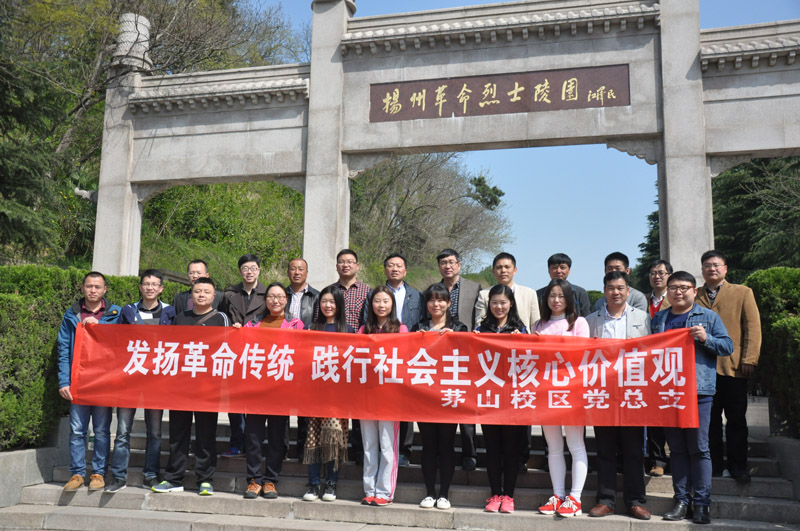 4月11日,茅山校区党总支赴扬州革命烈士陵园开展主题党日活动。扬州革命烈士陵园安葬着扬州各个革命时期200多名烈士,陈列着他们的生平事迹和斗争史料。在庄严的烈士纪念碑前,党员同志们神情肃穆,表达了对革命烈士的哀思。随后,大家参观了革命烈士纪念馆,了解革命事迹,接受革命传统教育。 学院王润贤副书记参加活动并发表讲话,他说,今年是抗日战争胜利70周年,我们要继承革命先烈遗志,始终保持与时俱进、奋发有为的精神状态,为社会、为学院发展贡献自己的全部精力。