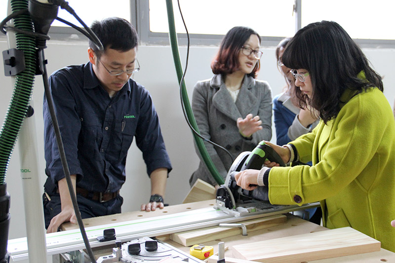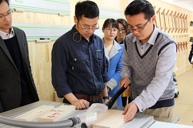 近期,由风景园林系组织的木工培训在学院北校区木作实训室顺利举行。木材科学与设计、园林建筑、艺术设计教研室等相关专业教师参加了培训,Festool公司木工培训师全程指导。为期三天的木工培训包括开料、铣型、钻孔、打磨、组装、涂饰等工序,每位参训教师通过使用台锯、曲线锯、铣机、开榫机等各种手动和电动工具,亲手制作出小木马,在掌握木工技能的同时感受属于木工制作的独有乐趣。