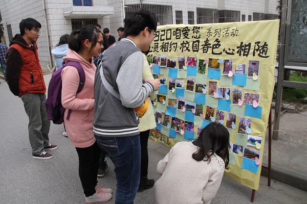 农学园艺系心育部在食堂门口开展了心理健康周宣传系列活动之“心灵相约,校园春色心相随”摄影展。同学们用心灵感悟春天的美好,用眼睛捕捉校园的美丽,用镜头定格春天的勃勃生机,把美丽校园定格在一瞬间。这些优秀的照片吸引了同学们的目光,他们纷纷在自己心仪的照片下边贴上了小星星以示喜欢。