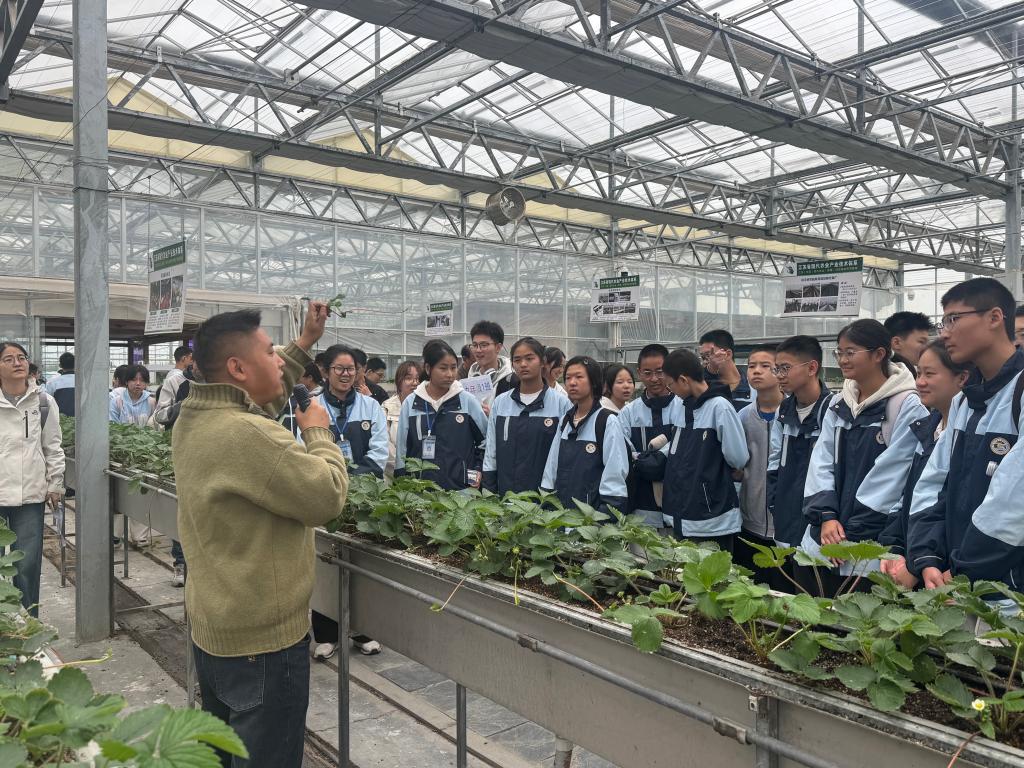 10月30日,镇江金山实验学校约500名中学生来到江苏农博园开启秋季研学之旅,亲身感受现代农业发展魅力。学子们在研学老师的带领下,依次参观了植物科技馆、空气凤梨馆、5G草业馆、农耕文化馆、海棠园及江苏现代园艺工程技术中心,详细了解珍稀植物德保苏铁、神奇无根植物空气凤梨、树干栽培药用植物铁皮石斛等植物资源,深入探究了草莓液冷育苗、草莓超高垄栽培、5G草坪工场生产、蔬菜无土栽培等农业前沿新技术新模式,感受现代农业科技力量。