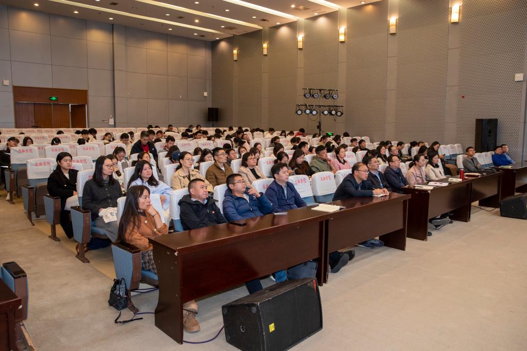 石榴花开,籽籽同心,粒粒向阳。为深入学习贯彻习近平总书记关于加强和改进民族工作的重要思想,进一步推动铸牢中华民族共同体意识教育进高校工作走深走实,10月29日下午,学院举办了“共筑同心梦,凝聚中华魂”——铸牢中华民族共同体意识专题讲座暨学术沙龙活动。学院统一战线工作领导小组成员,党委组织部(统战部)、党委宣传部、人文社科处、学生工作处、安全保卫处、团委等部门全体中层干部及教师代表,全体思想政治工作队伍、学院知联会会员及各二级学院师生代表近300人参加活动。报告会由学院党委副书记曹仁勇主持。