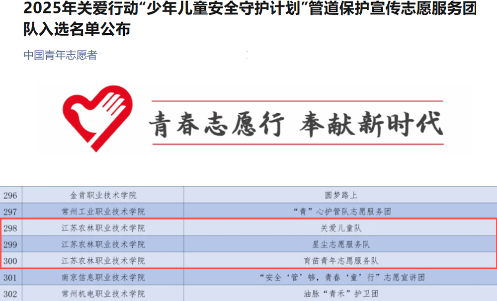 近日,共青团中央正式公布2025年关爱行动“少年儿童安全守护计划”管道保护宣传志愿服务团队名单。经过全国596所高校团队的激烈角逐,taptap官网信息工程学院组建的关爱儿童队、“星尘”志愿服务队,以及机电工程学院组建的“育苗”青年志愿服务队成功入选,为学校志愿服务品牌建设再添亮眼成绩。