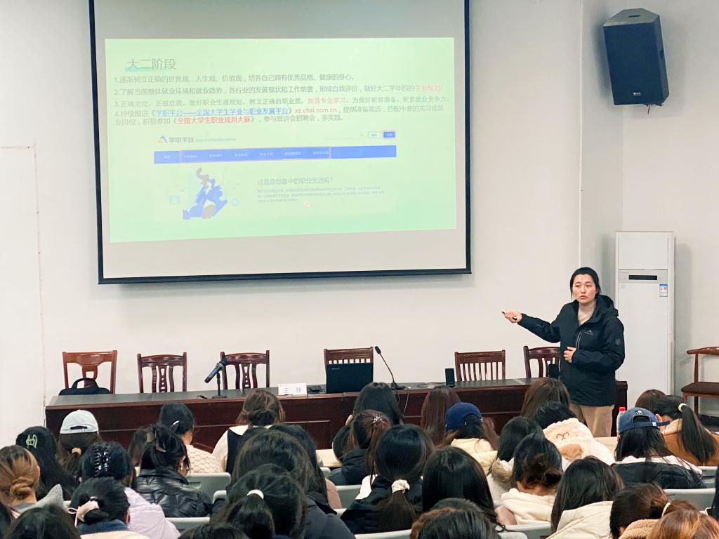 为强化生涯教育与就业指导,充分发挥校友的榜样引领作用,精准赋能新生职业生涯规划,激发创新创业动力,11月19日下午,经济与人文学院在茅山校区报告厅举办“职业规划引航 创新思维赋能”主题分享会。2007级财务管理专业校友、硅湖职业技术学院就业办主任王静为主讲嘉宾,学院校区专业全体新生参会。