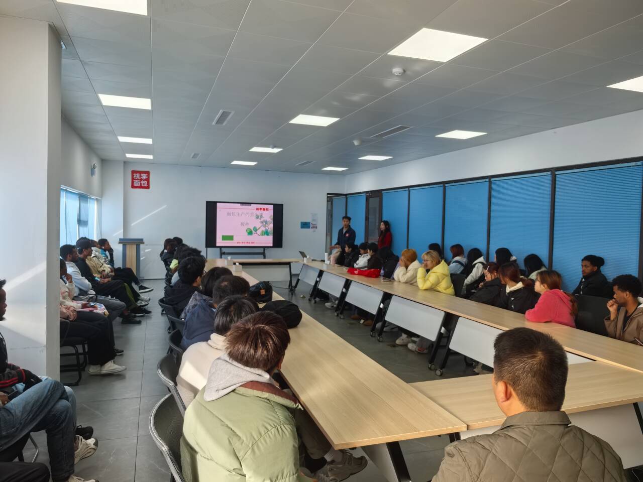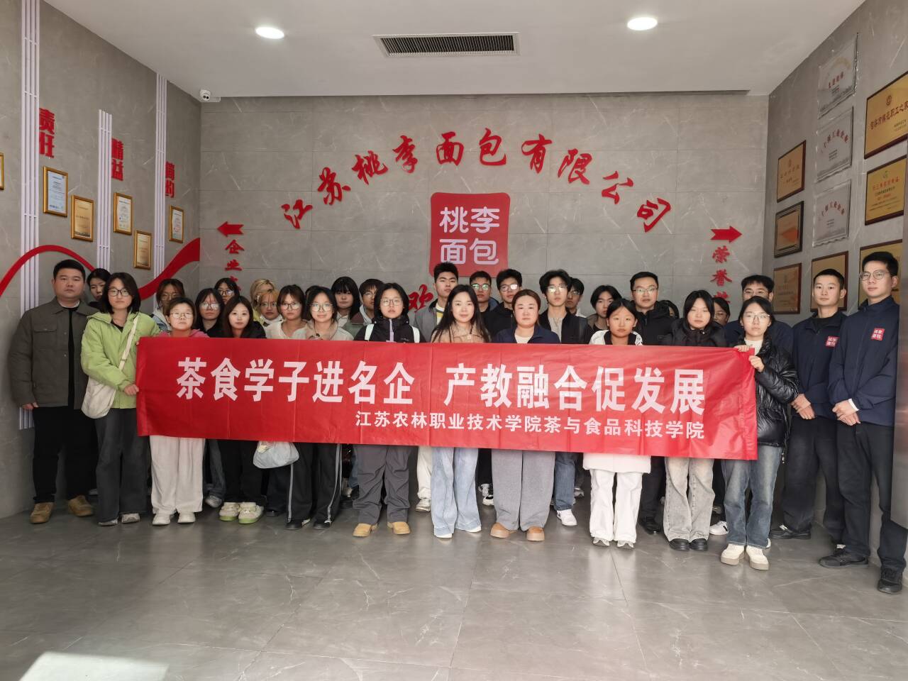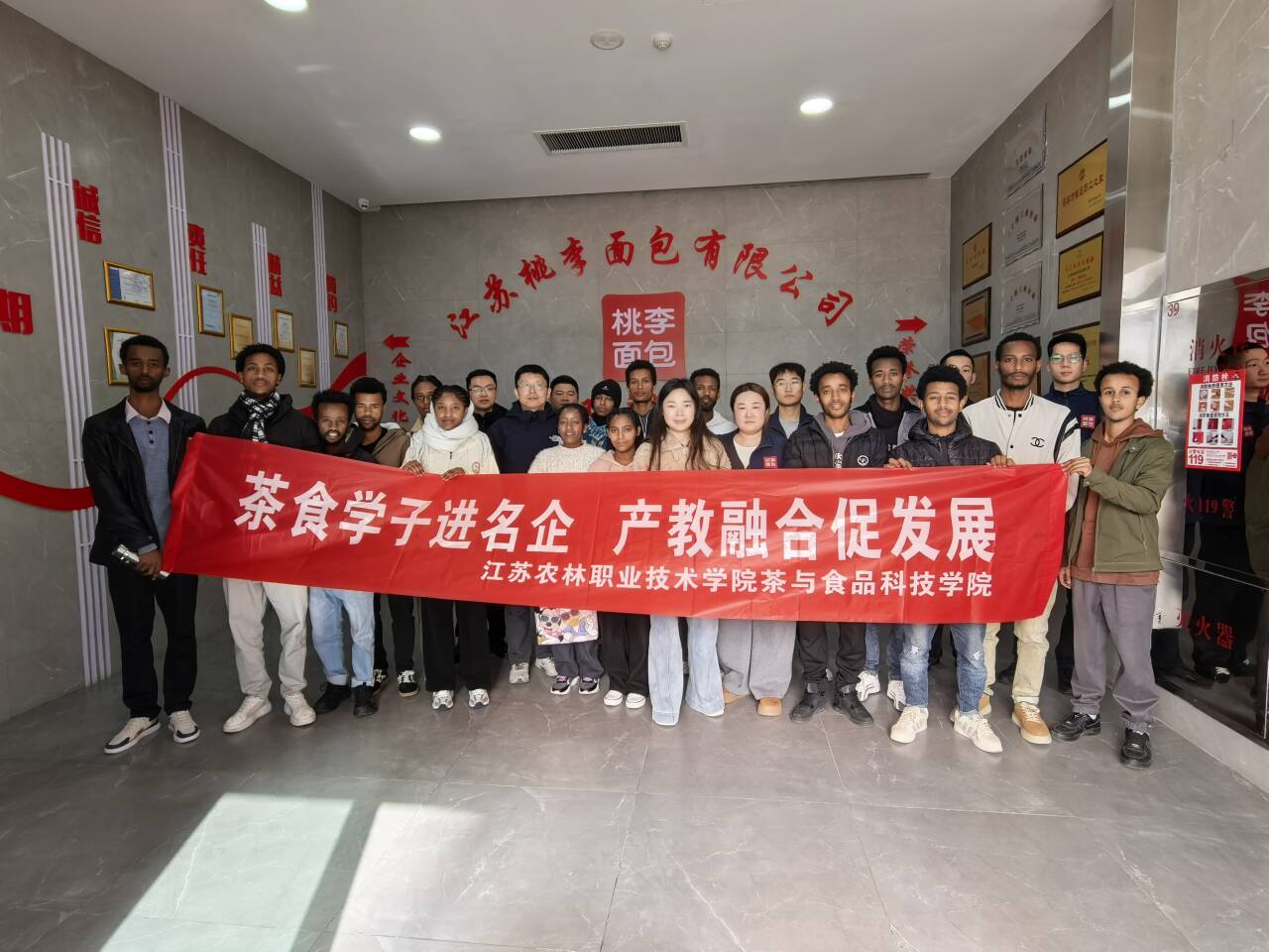 11月27日上午,茶与食品科技学院副院长曹淼及食品专业教师一行5人带领24食品智能加工技术和24农产品加工与质量检测(埃塞俄比亚班)学生,共同走进江苏桃李面包有限公司,开展以产教融合为主题的实践活动。