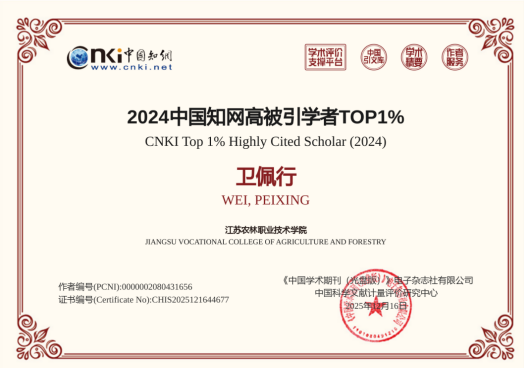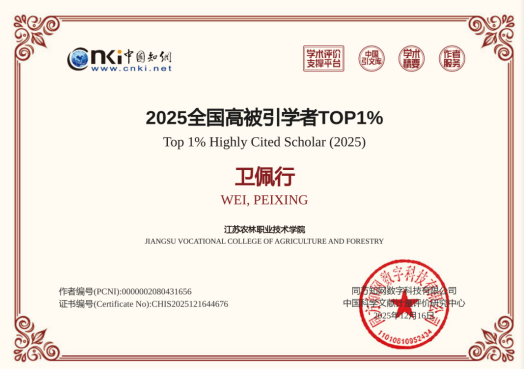 近日,中国知网中国科学文献计量评价研究中心发布《2025全国高被引学者榜单》,taptap官网卫佩行博士再次入选“2025中国知网高被引学者TOP1%”,是全国同类职业院校中为数不多的连续两年入选TOP1%的学者之一。卫佩行博士及所在木材科学科组团队长期从事生物质工程材料、家具材料力学、家具设计等方向研究,多篇学术成果得到同行专家肯定并引用。其入选不仅是对个人及团队学术成果的肯定,也是对学校学术产出质量的高度认可。