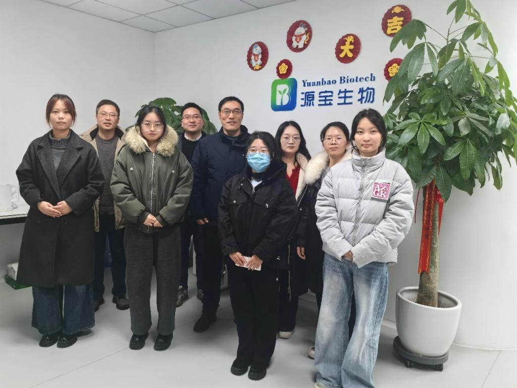 2月6日,茶与食品科技学院生物工程系主任宋刚带领3位博士、4位农业生物技术专业学生,赴南京源宝生物科技有限公司开展访企拓岗活动。在公司负责人时松的陪同下,师生一行参观了企业实验室,详细了解公司的技术平台、核心产品及生产流程。随后,校企双方围绕行业人才需求、学生实习就业等内容进行座谈,并就建立实习实践基地、开展产学研合作及拓宽毕业生就业渠道等达成初步意向。