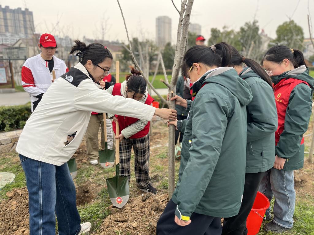 植树队伍中,有一群特别的身影——来自华阳中心小学的40名小学生。风景园林学院的“大朋友们”主动当起“护绿导师”,手把手教孩子们挥锹铲土、扶苗填坑,用通俗易懂的语言讲解西府海棠的栽种知识。“哥哥,这棵树什么时候能开花呀?”“姐姐,我种的这棵能长多高?”面对孩子们天真的提问,志愿者们耐心解答,在孩子们心中播下热爱自然、保护环境的绿色种子。大手拉小手,种下的不仅是海棠树苗,更是生态文明代代相传的希望。