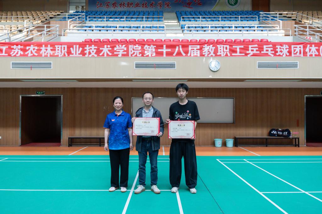 4月17日晚上6:30,由学校工会主办、体育部协办的第十八届教职工乒乓球团体赛在体育馆拉开帷幕,学校党委委员、纪委书记孙俭参加并宣布比赛开幕。经过两天的角逐,机电工程学院分工会、畜牧兽医学院分工会、茶与食品科技学院分工会、综合分工会、农学园艺学院分工会、信息工程学院分工会代表队分别获得前六名,体育部代表队并列第一名,学校党委委员、副校长王瑾,体育部、工会负责人为获奖代表队颁奖。