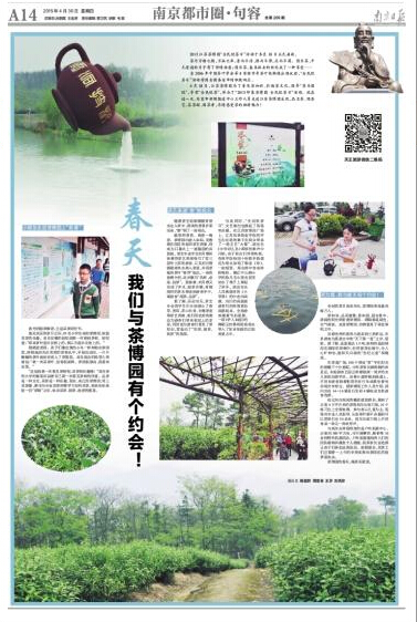 4月18日,江苏茶博园为了普及茶知识、弘扬茶文化,倡导“茶为国饮”,号召“全民饮茶”,举办了“2015印象茶博园 全民饮茶日”活动。就在这一天,句容市新闻报道中心工作人员走进江苏茶博园采风,品名茶、观茶艺、答茶疑、闻茶香,尽情感受茶的独特魅力!