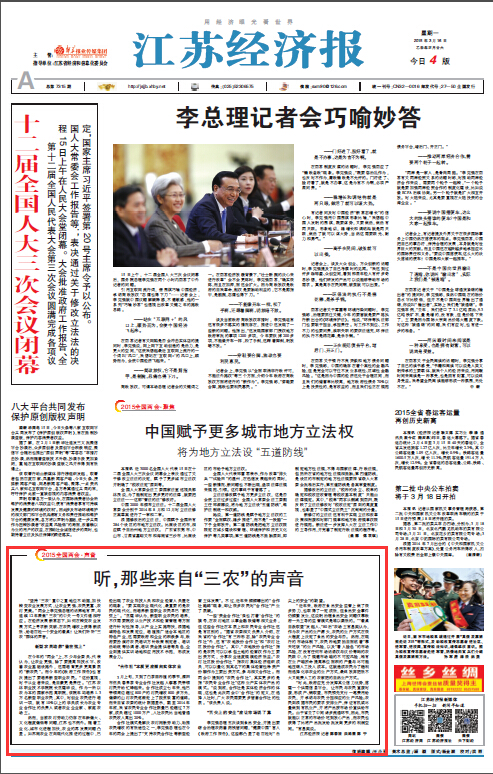 “坚持‘三农’重中之重地位不动摇,加快转变农业发展方式,让农业更强、农民更富、农村更美。”两会上李克强总理的话掷地有声,与连续12年聚焦“三农”的中央一号文件遥相呼应。在经济发展新常态下,如何在转变农业发展方式上寻求新突破、在农民增收上获得新成效、给老百姓一个安全的餐桌?让我们听听“三农”群体的声音。