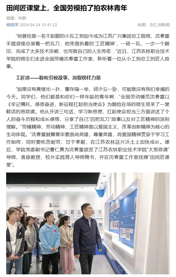 报道链接:田间匠课堂上,全国劳模拍了拍农林青年 (xhby.net)