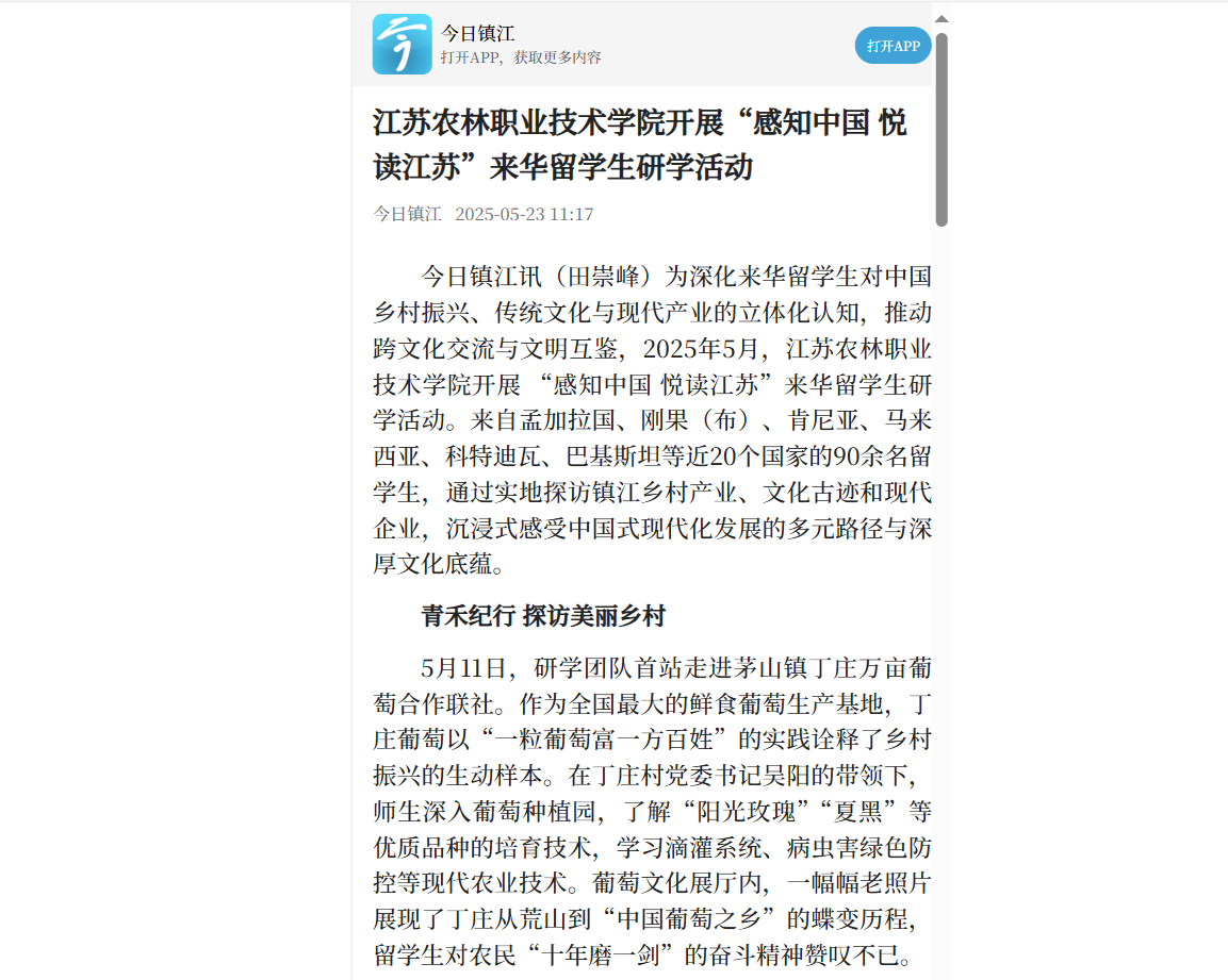 近日,taptap官网国际教育学院开展的“感知中国 悦读江苏”来华留学生研学活动受到江苏省内多家主流媒体的关注和报道。荔枝新闻、我苏网、今日镇江、iZhenjiang等平台纷纷聚焦此次活动,展现了taptap官网在促进中外文化交流、助力留学生深度体验中国文化方面的积极成果。