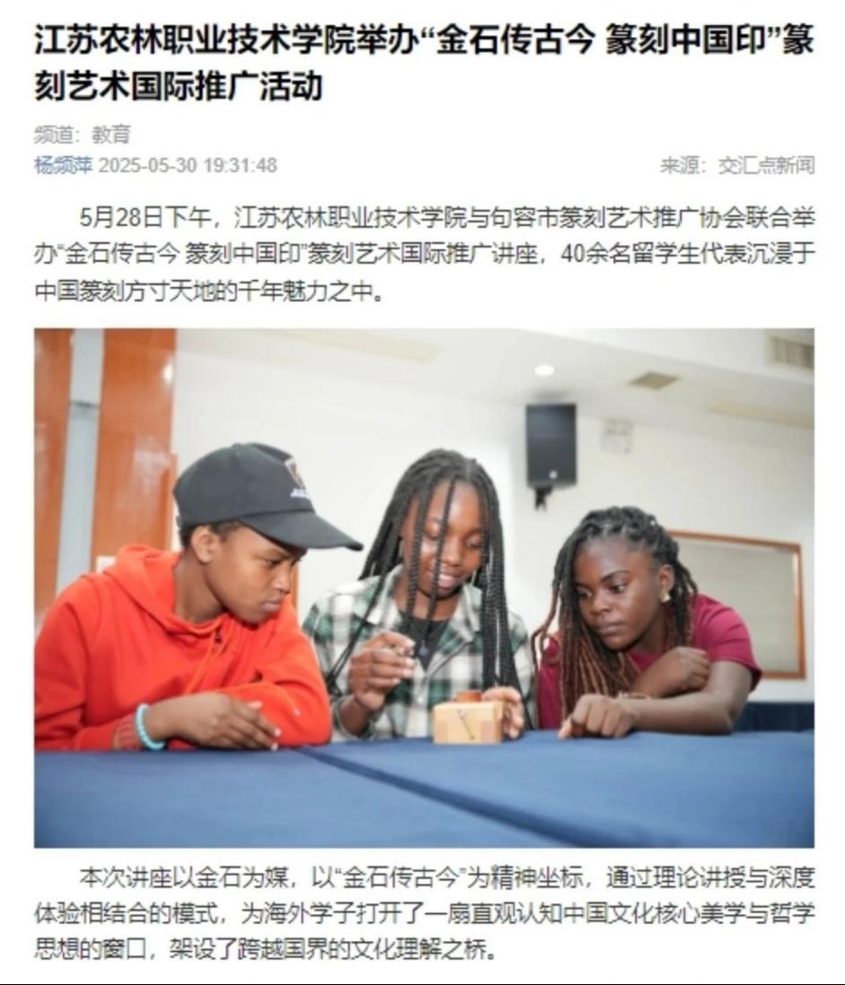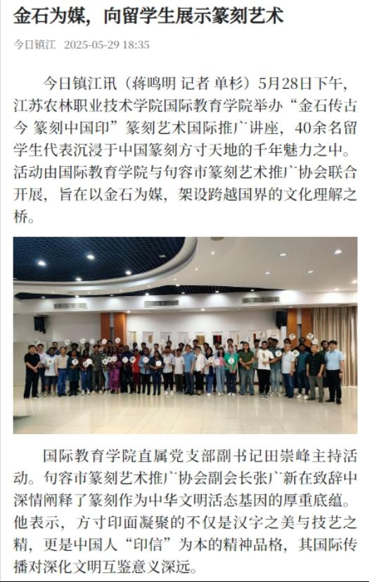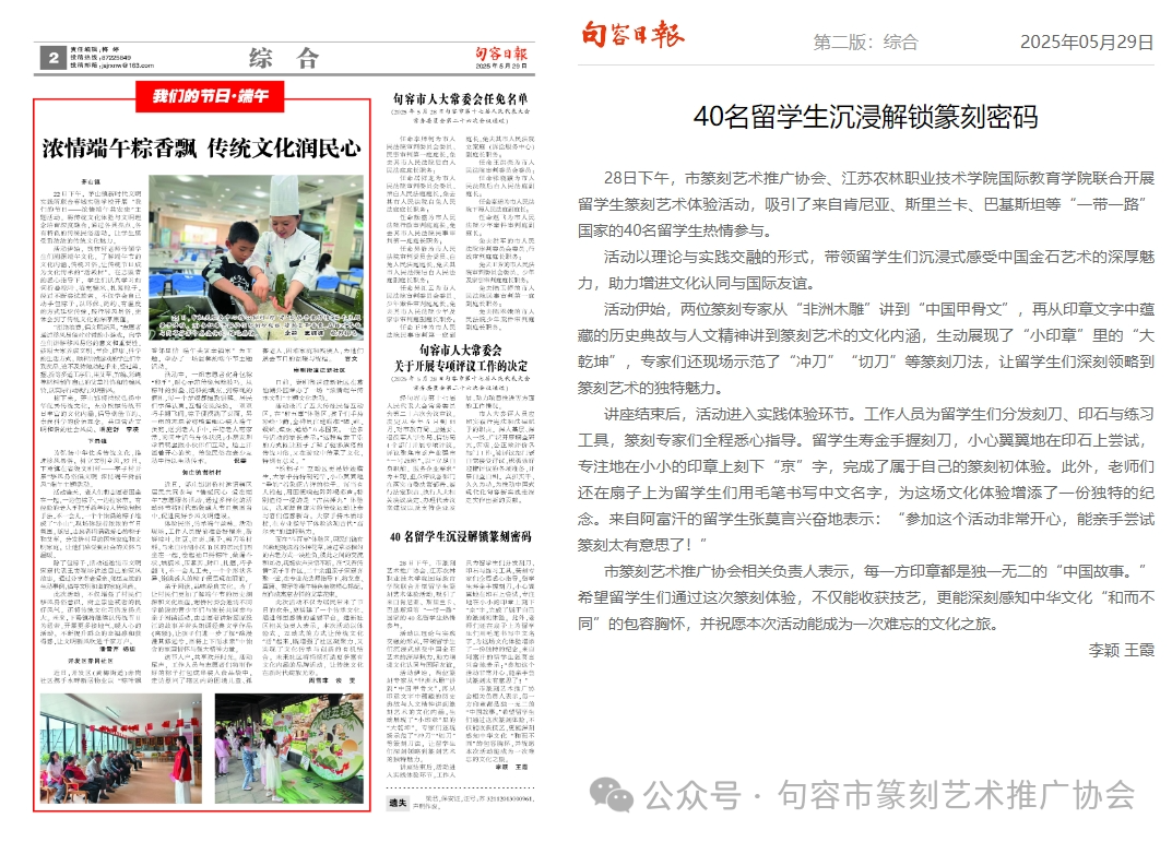 近日,taptap官网联合句容市篆刻艺术推广协会开展的“金石传古今 篆刻中国印”篆刻艺术国际推广活动受到江苏省内多家主流媒体的关注和报道。新华日报·交汇点、今日镇江、句容日报等媒体纷纷聚焦此次活动,展现了taptap官网在促进中外文化交流、助力留学生深度体验中国文化方面的积极成果。