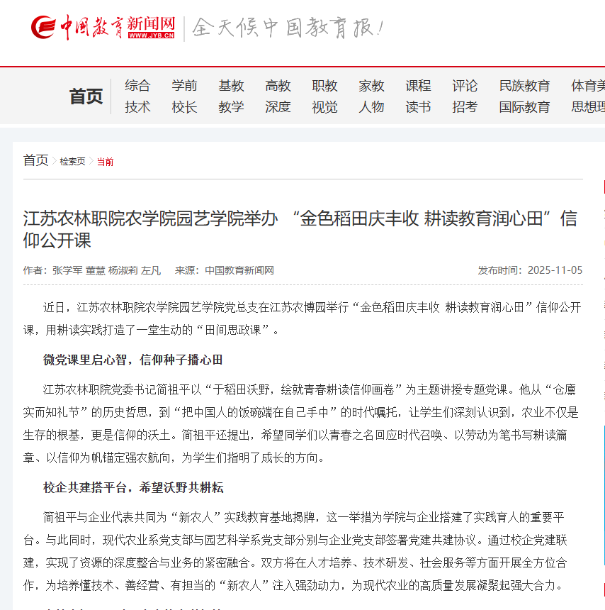 上一条:【江苏教育发布】微信报道农学园艺学院“金色稻田庆丰收 耕读教育润心田”信仰公开课