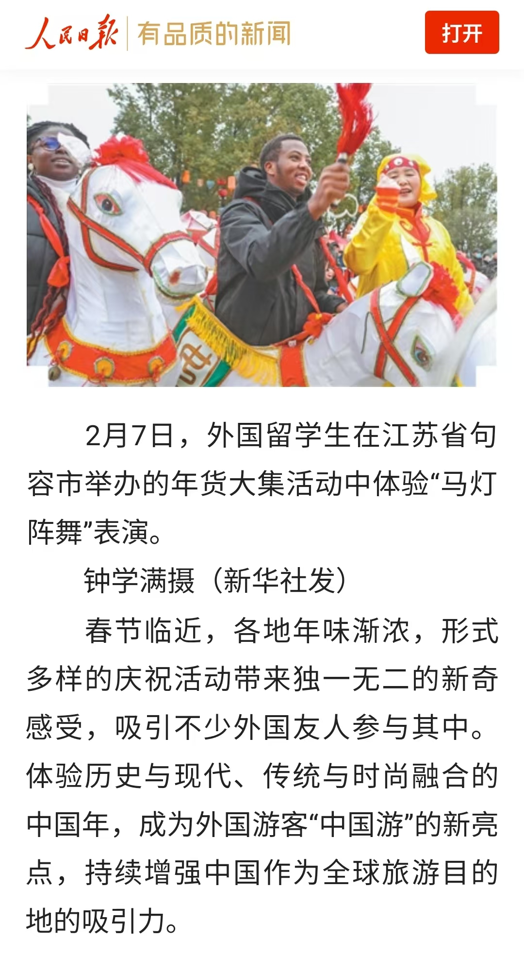 2月7日,学院组织十多名留学生逛年货大集,体验句容非遗文化,品尝句容特色美食!活动相继受到《人民日报》《凤凰网江苏》《句容发布》等媒体平台的关注与报道。