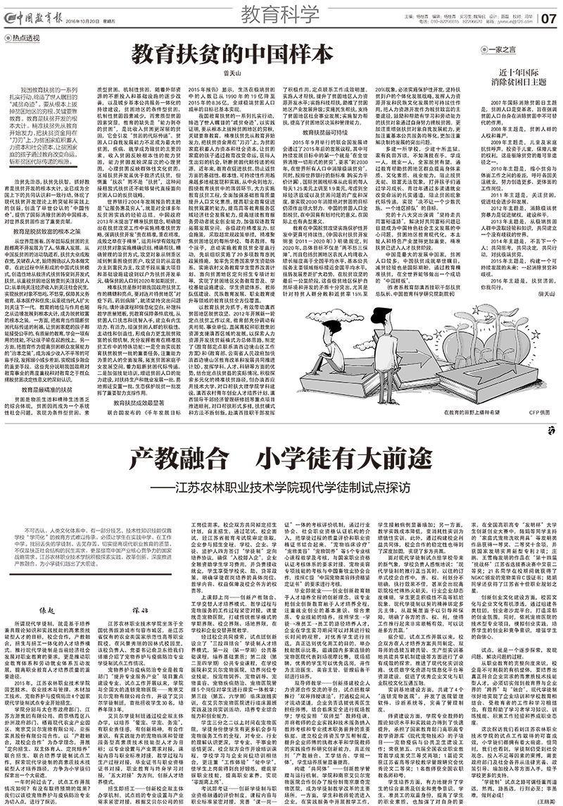 学院分别与太仓市政府部门、江苏方源集团有限公司、南京栖霞区八卦洲政府部门、栖霞现代农业产业园区、南京艾贝尔宠物有限公司、亚振家具股份有限公司合作,以“产教融合,政校企合作”为办学理念,开展“定向招生、双主体育人、定岗培养”联合招生、联合培养学徒制试点工作,探索现代学徒制的高素质技术技能型人才培养路径,力争为小学徒们探索出一个大前途。