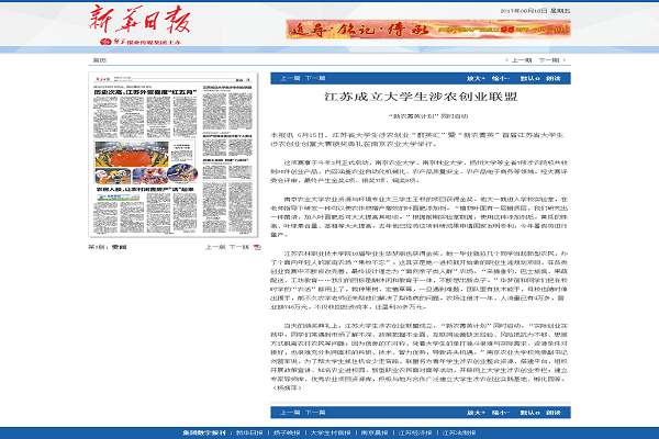 6月15日,江苏省大学生涉农创业“群英汇”暨“新农菁英”首届江苏省大学生涉农创业创富大赛颁奖典礼在南京农业大学举行。农学园艺系华梦丽等同学参与的项目《果牧不忘家庭农场》赢得实践组唯一一个“金奖”。