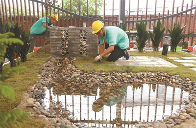 据介绍,此次园林景观设计赛项对接世界技能大赛,分为园林景观设计和园林工程施工两个部分。每队4名选手,其中2名选手要按照编制好的计划,参照规划布局和高程格式细节以及局部图纸等,使用工具完成水电瓦木和绿化等工作,实地施工打造园林小院;施工部分面积为20平方米,时间为10.5小时;最终考核采用世界技能大赛的评分标准,尺寸和标高误差分别不能超过3毫米、2毫米。与此同时,另外2名选手在3.5小时内,根据自身特长选择手绘或利用计算机设计软件对给定的2000平方米庭院绿地进行整体景观设计,并最终以图片展板形式提交比赛作品。
