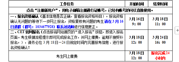 特别提醒:必须先在3月8日—3月15日完成校内预报名流程,然后才可在3月18日—3月24日登录CET官网完成正式报名,否则无本次报名资格。
